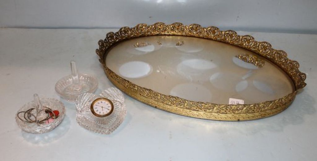 640 Vanity Mirror, Heart Shaped Glass Clock & Two Ring Holders