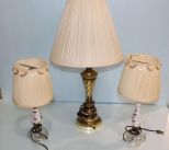 664 Pair of Bedroom Lamps & Brass Table Lamp