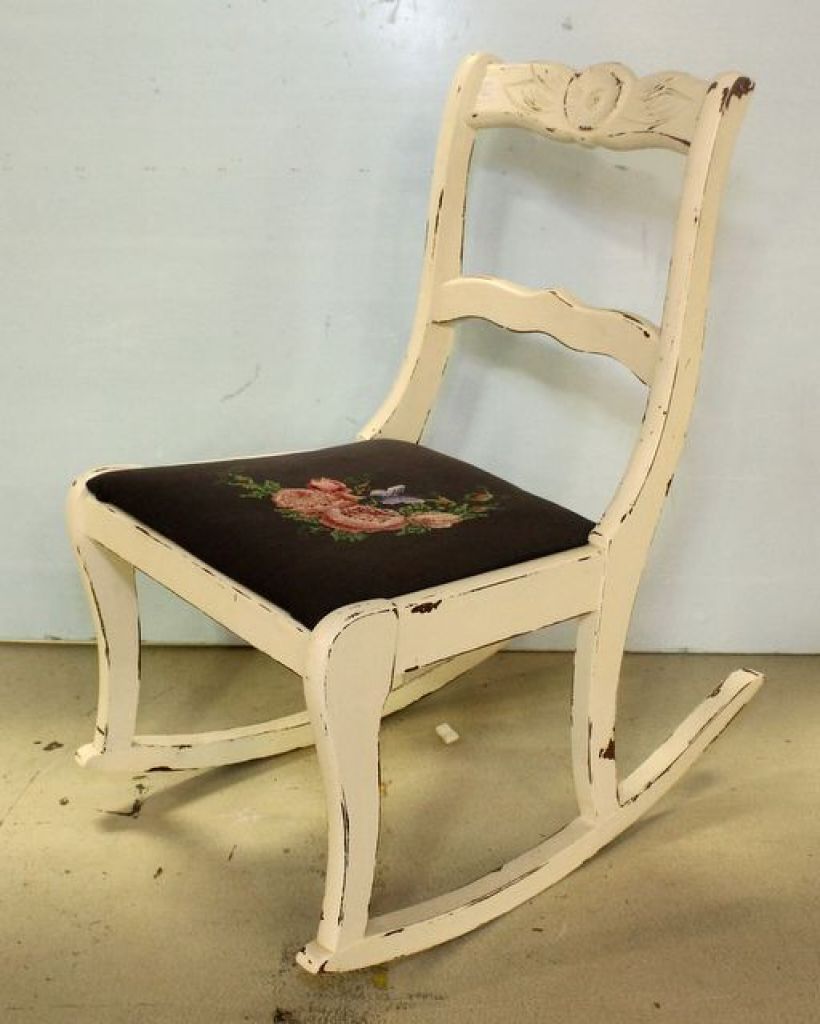 497 White Painted Sewing Rocker with Needlepoint Seat