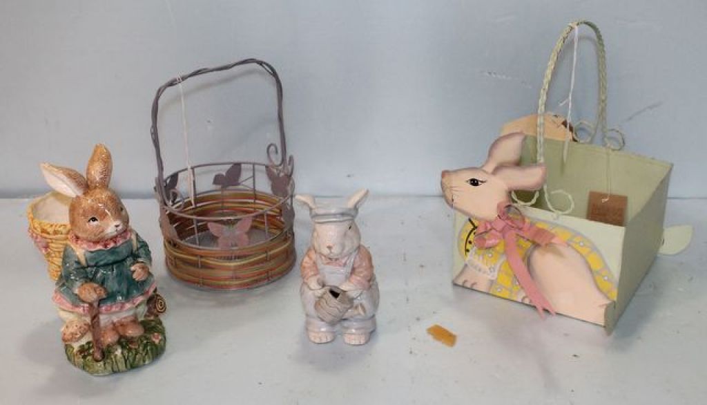 1711 Butterfly Basket, Rabbit Basket & Two Rabbit Figurines