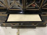 299 Haynes Chinoiserie Black Lacquer Break Front China Cabinet