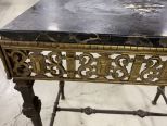 Antique Heavy Brass Marble Top Side Table, ornate brass base, black marble insert, needs some cleaning, 21"h., 21"w., 12"d. Antique Heavy Brass Marble Top Side Table, ornate brass base, black marble insert, needs some cleaning, 21"h., 21"w., 12"d.