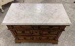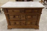 Victorian Style Marble Top Chest, white marble, three drawers, walnut, 25"h., 35'w., 18"d. Location Right Side 1st Row Victorian Style Marble Top Chest, white marble, three drawers, walnut, 25"h., 35'w., 18"d. Location Right Side 1st Row