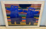 Jacques Soisson Serigraph "The Blue Men" Pencil Signed, #130/150, with some paper work, framed, 26"h., 33"w. From an estate out of Vicksburg MS, Location Cases by Screen Jacques Soisson Serigraph "The Blue Men" Pencil Signed, #130/150, with some paper work, framed, 26"h., 33"w. From an estate out of Vicksburg MS, Location Cases by Screen