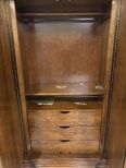 Pulaski Furniture Antique Reproduction Armoire, two door beveled mirrors, cherry, footed, interior drawers, 80"h., 39"w., 19"d. Location Right Side 6th Row Pulaski Furniture Antique Reproduction Armoire, two door beveled mirrors, cherry, footed, interior drawers, 80"h., 39"w., 19"d. Location Right Side 6th Row