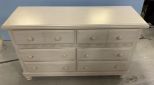 Modern White Dresser, factory painted, 6 drawers, has a mirror, 34"h., 54"w., 16"d. Location Right Side 2nd Row Modern White Dresser, factory painted, 6 drawers, has a mirror, 34"h., 54"w., 16"d. Location Right Side 2nd Row