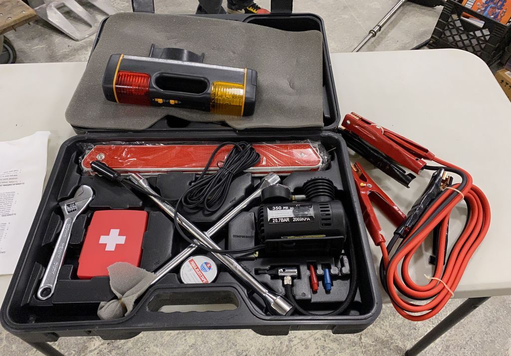 Car Emergency Kit, in case, like new, Location Front Shelves 4th Shelf Car Emergency Kit, in case, like new, Location Front Shelves 4th Shelf