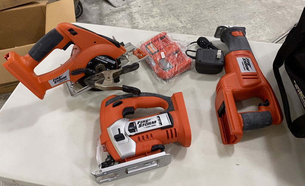 Black & Decker Fire Storm Battery Operated Saws, has charger, no batteries, Location Back of Center Black & Decker Fire Storm Battery Operated Saws, has charger, no batteries, Location Back of Center