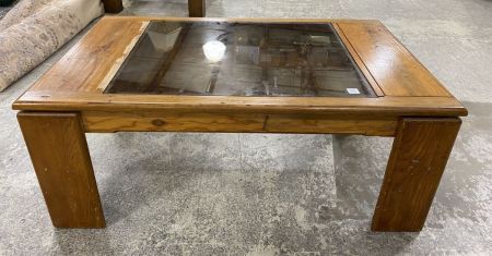 Pine Backgammon coffee table, glass top, 15"h., 39"w., 25"d. Location Right Side 6th Row Pine Backgammon coffee table, glass top, 15"h., 39"w., 25"d. Location Right Side 6th Row