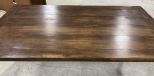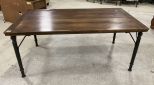Modern Farm Style Dining Table, metal legs, wood top, stained, good condition, 30"h., 70"long., 38"w. Location Left Side 4th Row Modern Farm Style Dining Table, metal legs, wood top, stained, good condition, 30"h., 70"long., 38"w. Location Left Side 4th Row