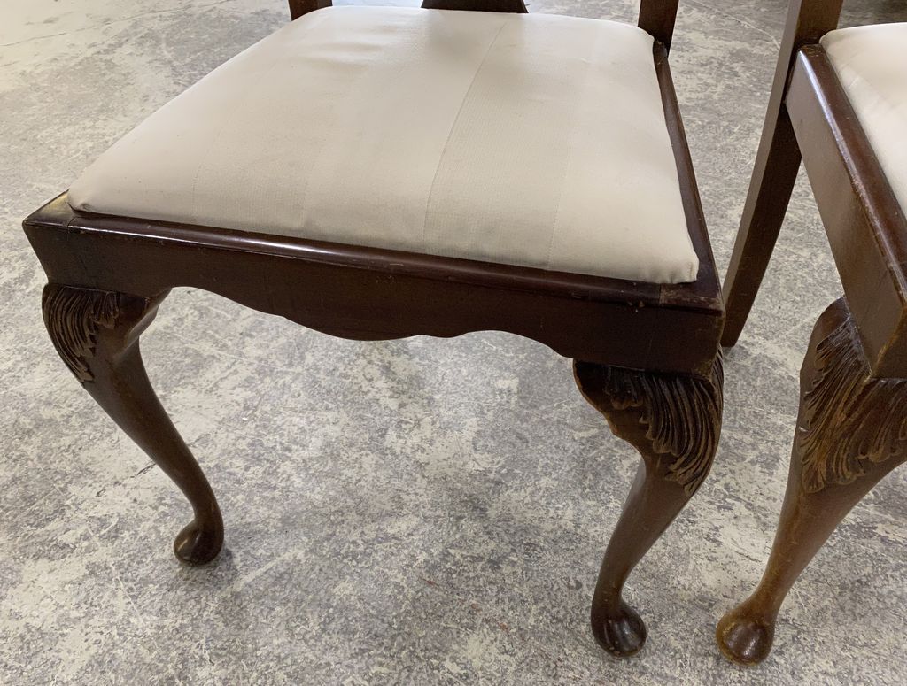 Pair of Mahogany Queen Anne Side Chairs, matching cushions, some age wear, Location Front Pair of Mahogany Queen Anne Side Chairs, matching cushions, some age wear, Location Front