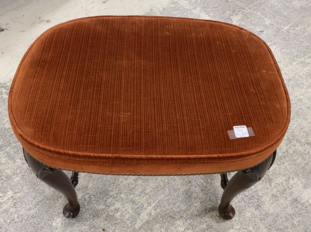 Queen Anne Style Cherry Ottoman, upholstery cushion top, 19"h., 24"w. Location Left Side 1st Row Queen Anne Style Cherry Ottoman, upholstery cushion top, 19"h., 24"w. Location Left Side 1st Row