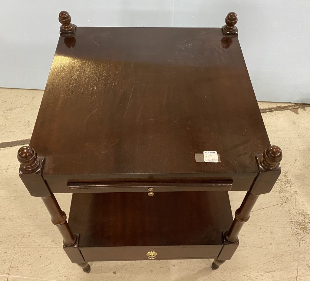 Cherry Bamboo Style 2 Tier Lamp Table, two tier, single drawer, pull out tray, 24"h., 18"w. Location Right Side 5th Row Cherry Bamboo Style 2 Tier Lamp Table, two tier, single drawer, pull out tray, 24"h., 18"w. Location Right Side 5th Row