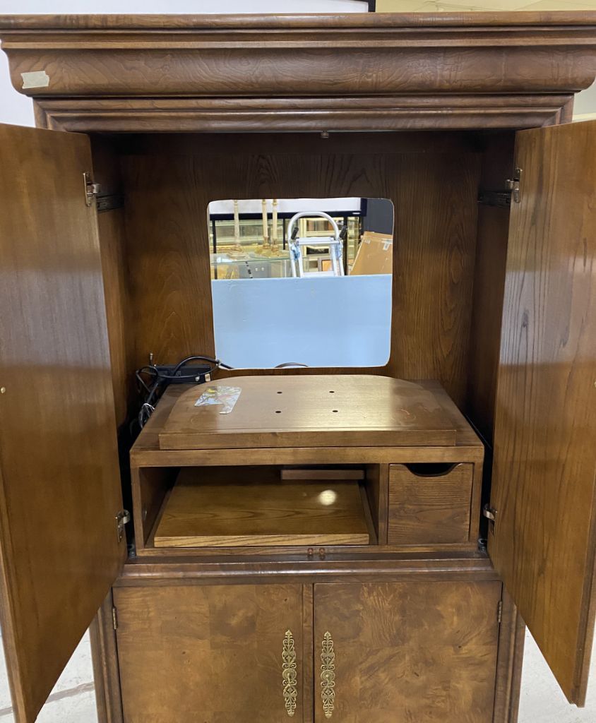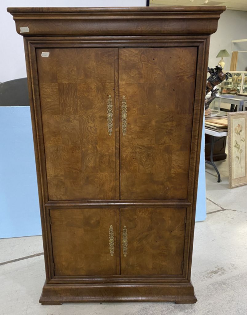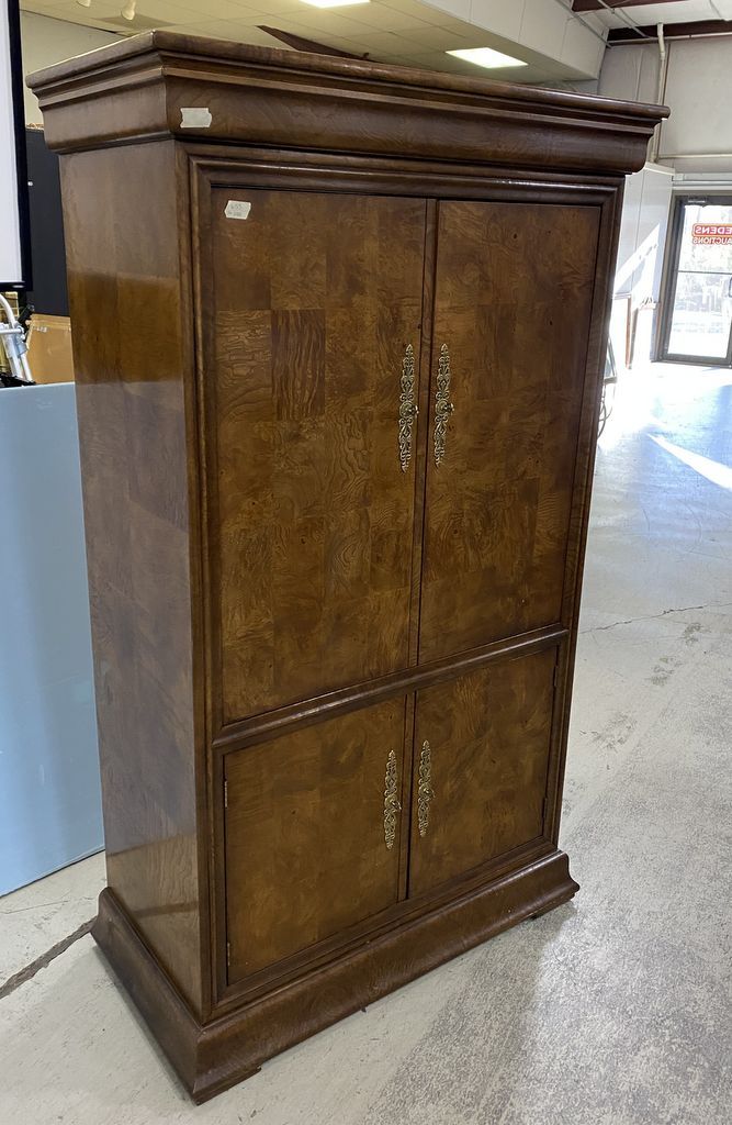 Henredon TV Armoire, four door, one piece, burl finish, 72"h., 42"w., 21"d. Location Right Side 5th Row Henredon TV Armoire, four door, one piece, burl finish, 72"h., 42"w., 21"d. Location Right Side 5th Row