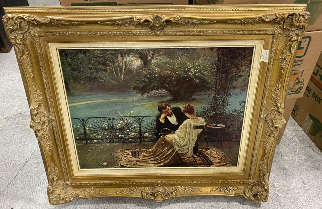 Couple Imagery Print, on board, gold gilt framed, 32"h., 38"w. Couple Imagery Print, on board, gold gilt framed, 32"h., 38"w.