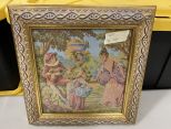 Framed European English Tapestry Framed, 13"h., 12"w. Framed European English Tapestry Framed, 13"h., 12"w.