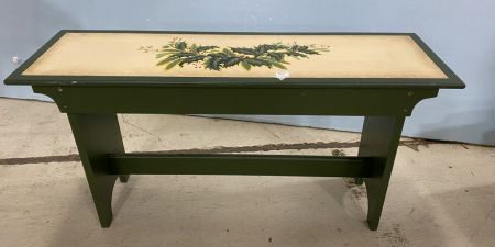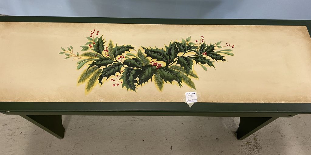 Holly Decorated Modern Bench, 18"h., 35"w. Location Right Side 5th Row Holly Decorated Modern Bench, 18"h., 35"w. Location Right Side 5th Row