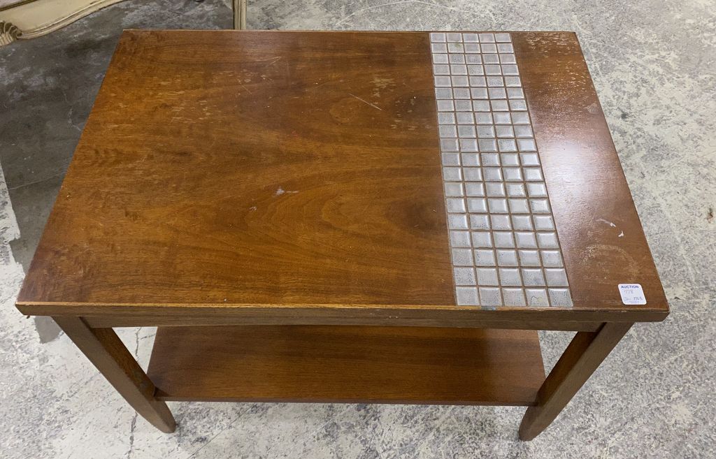 Cherry Lamp Table, two tier, has light worn spots on top, 20"h., 28"w. Location Right Side 1st Row Cherry Lamp Table, two tier, has light worn spots on top, 20"h., 28"w. Location Right Side 1st Row