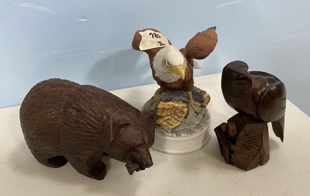 780 Hand Carved Bear, Eagle, and Ceramic Eagle