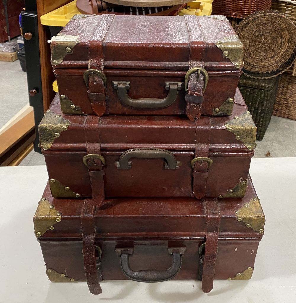 Three Decorative Luggage Storage, largest is 17"w. Location Left Side 5th Row Three Decorative Luggage Storage, largest is 17"w. Location Left Side 5th Row