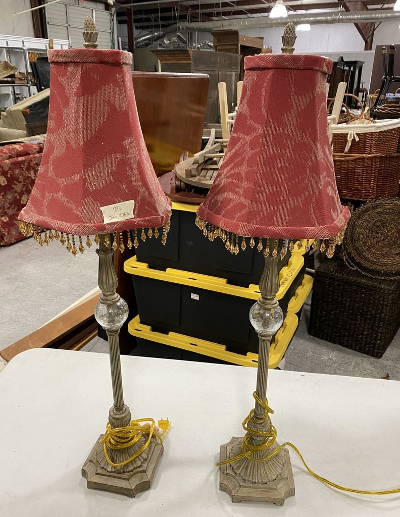 Pair of Metal Tole Style Table Lamps, 32"h. Location Left Side 3rd Row Pair of Metal Tole Style Table Lamps, 32"h. Location Left Side 3rd Row