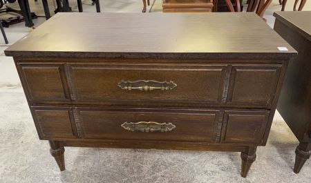 Vintage Two Drawer Chest, French Provincial, has wear, 24'h., 36"w. Location Right Side 1st Row Vintage Two Drawer Chest, French Provincial, has wear, 24'h., 36"w. Location Right Side 1st Row