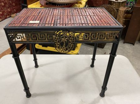 Metal Oriental Bamboo Style Side Table 20"h., 20"w. Location Back of Center Metal Oriental Bamboo Style Side Table 20"h., 20"w. Location Back of Center