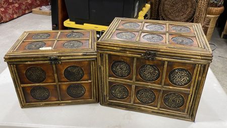 Two Storage wood Boxes, lift top, 13"h. Location Left Side 4th Row Two Storage wood Boxes, lift top, 13"h. Location Left Side 4th Row