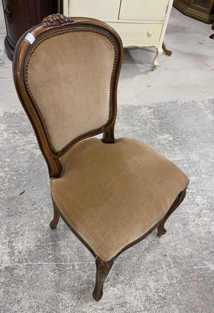 French Style Side Chair, upholstered seat cushion, carved. Location Front French Style Side Chair, upholstered seat cushion, carved. Location Front