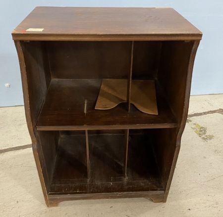 Mahogany Record Cabinet, worn, has missing veneer, needs work, 29"h., 21"w., 13"d. Location Right Side 2nd Row Mahogany Record Cabinet, worn, has missing veneer, needs work, 29"h., 21"w., 13"d. Location Right Side 2nd Row
