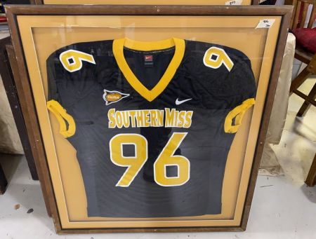 Southern Miss Framed Football Jersey, 38"h., 34"w. Southern Miss Framed Football Jersey, 38"h., 34"w.
