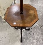Octagon Lamp Table, pedestal table with lamp, and shade, 60"h. Location Left Side 1st Row Octagon Lamp Table, pedestal table with lamp, and shade, 60"h. Location Left Side 1st Row