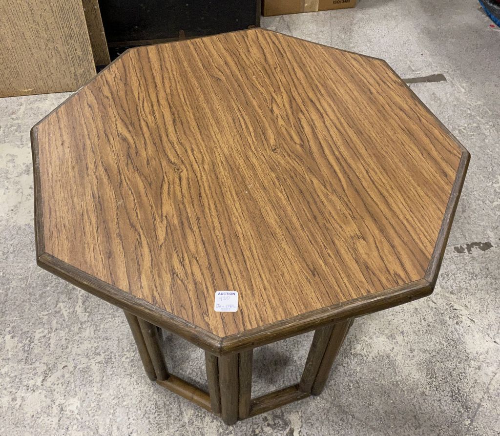 Oak Finish Octagon Lamp Table, 21"h., 24"w. Oak Finish Octagon Lamp Table, 21"h., 24"w.