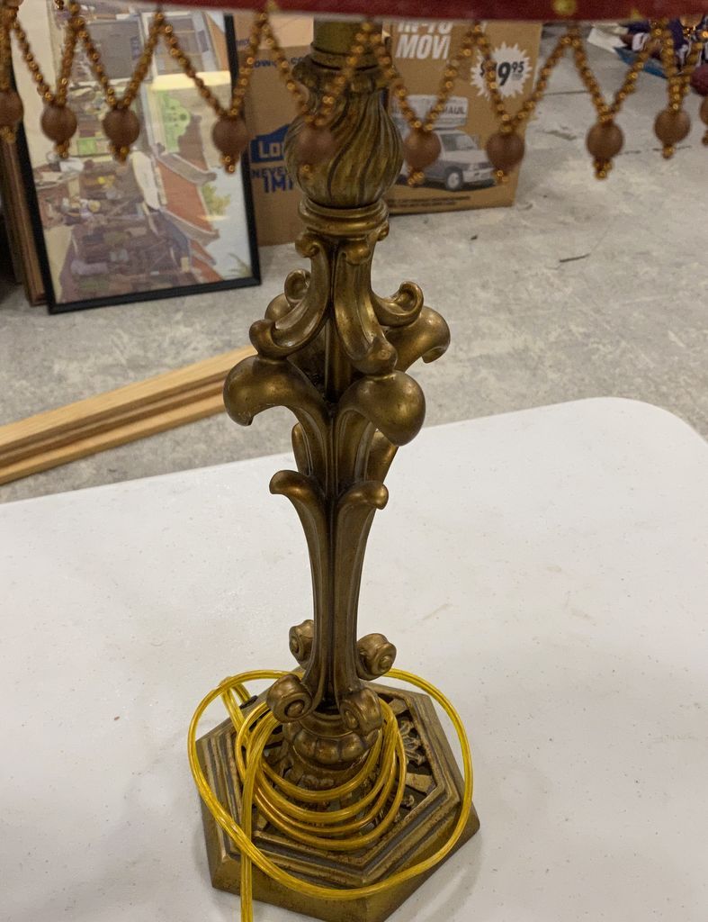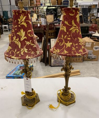 Gold Gilt Candle Stick Lamps, with shades, 30"h. Gold Gilt Candle Stick Lamps, with shades, 30"h.