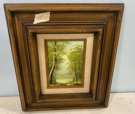 Signed Williams Painting on Board, framed, 15"h., 13"w. Location Art Rack Behind Tall White Cases Signed Williams Painting on Board, framed, 15"h., 13"w. Location Art Rack Behind Tall White Cases