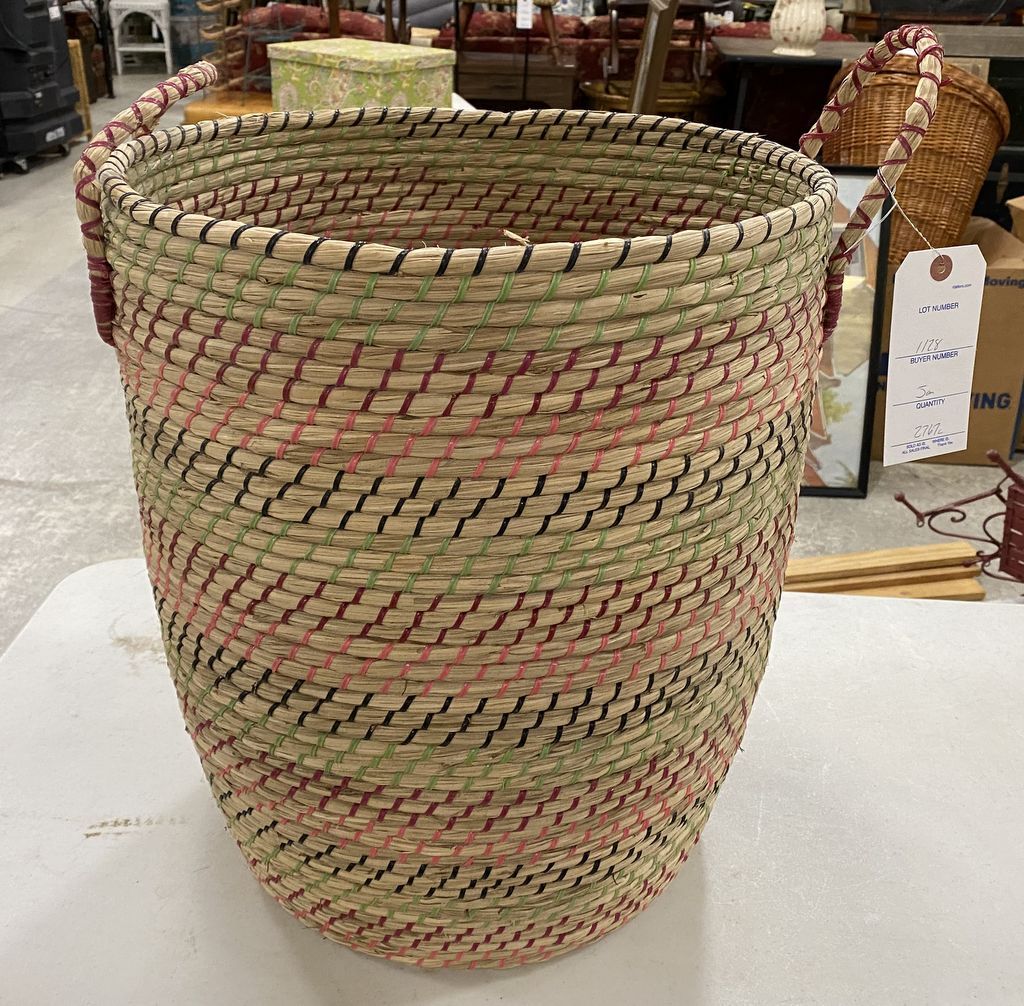Home Goods Straw Basket, with handles, 19"h, Location Left Side 2nd Row Home Goods Straw Basket, with handles, 19"h, Location Left Side 2nd Row