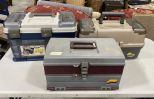 Three Fishing Tackle Boxes with tackle included, Location Back Silver Metal shelves, Location Back Silver Metal shelves Three Fishing Tackle Boxes with tackle included, Location Back Silver Metal shelves, Location Back Silver Metal shelves