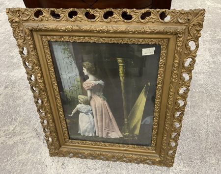 Vintage Framed Lady and Child Print, 28"h., 24"w. Location Left Wall Vintage Framed Lady and Child Print, 28"h., 24"w. Location Left Wall