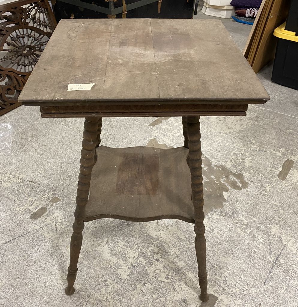 Antique Square Top Lamp Table, needs work, 29"h., 18"w. Location Back of Center Antique Square Top Lamp Table, needs work, 29"h., 18"w. Location Back of Center