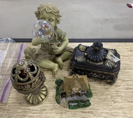 1226 Child Figurine, Plastic Box, Egg, and Mini House