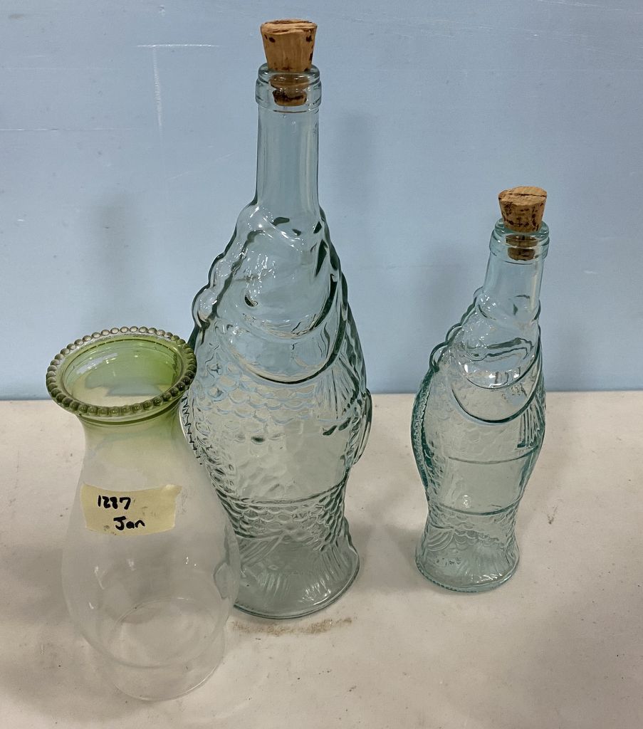 Two Fish Glass Jar and Hurricane Shade, Location: Back White Cases Two Fish Glass Jar and Hurricane Shade, Location: Back White Cases