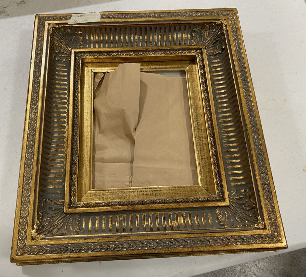 Gold Gilt Frame For 8" x 10" Picture, Location Back Silver Metal shelves Gold Gilt Frame For 8" x 10" Picture, Location Back Silver Metal shelves