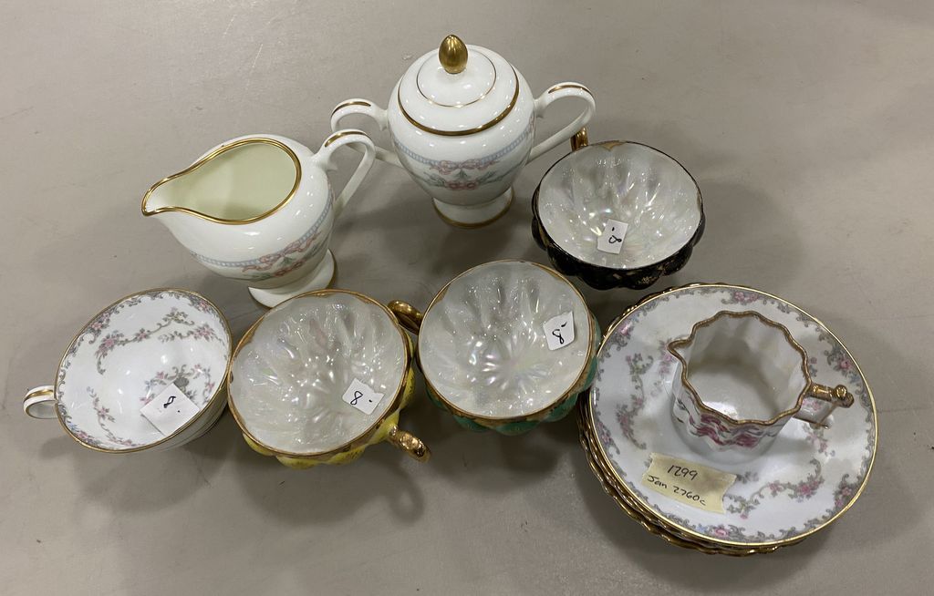1299 Porcelain Cups, Saucers, and China Creamer, Sugar