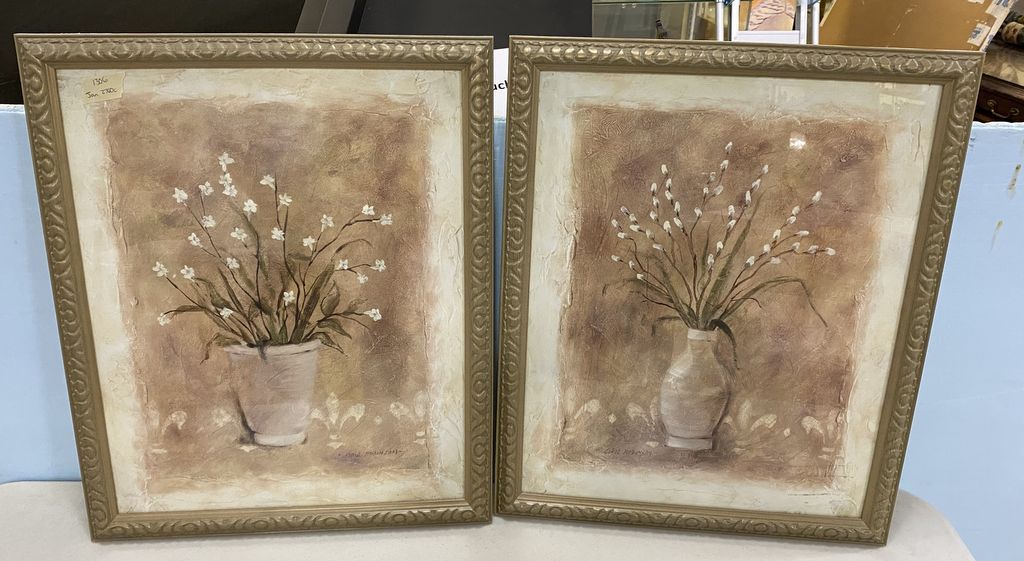 Pair of Flower Vase Prints, framed, 23"h., 18"w. Location Right Wall Pair of Flower Vase Prints, framed, 23"h., 18"w. Location Right Wall
