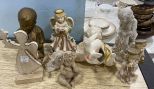 Grouping of Angel Figurines. Includes 2 Ceramic Tablepiece Boy and Girl Angel, Ceramic Heavenly Angel Figurine, Wooden Angel Holding Star Figurine, Angel Holding Dove Figurine, Mantel Angel Sucking Thumb, and Other Misc Items, Location Front Shelves 3rd Shelf Grouping of Angel Figurines. Includes 2 Ceramic Tablepiece Boy and Girl Angel, Ceramic Heavenly Angel Figurine, Wooden Angel Holding Star Figurine, Angel Holding Dove Figurine, Mantel Angel Sucking Thumb, and Other Misc Items, Location Front Shelves 3rd Shelf