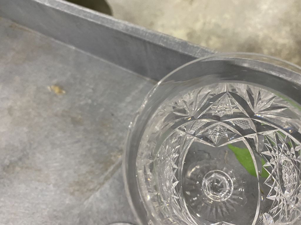 Set of 4 American Brilliant Cut Glass Water Goblets. One of rims is damaged chipped. Location Front Glass Display Case Set of 4 American Brilliant Cut Glass Water Goblets. One of rims is damaged chipped. Location Front Glass Display Case