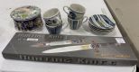 1531 Hunting Knife Art No: K-074SV, 4 Piece Tea and Saucer Kafuh Japan Set, Hand Painted Covered Powder or Dresser Oval Box or Capodimonte