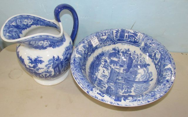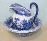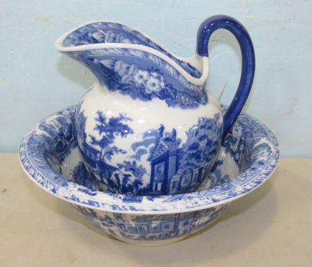 312 Victorian Ware Ironstone Blue & White Pitcher and Bowl