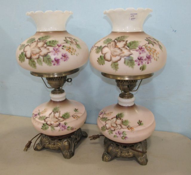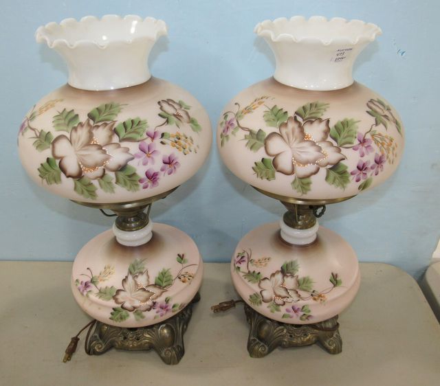 473 Pair of Hand Painted Glass Gone with the Wind Lamps