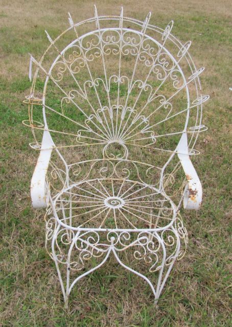 478 Wrought Iron Ornate High Back Arm Chair